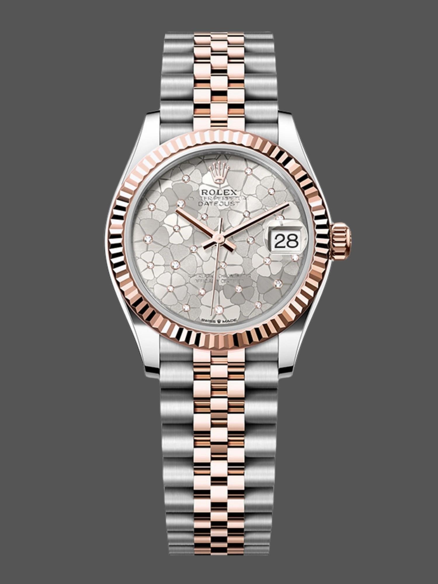 Rolex Datejust 31 mm rose gold 278271 floral silver Jubilee watch for women
