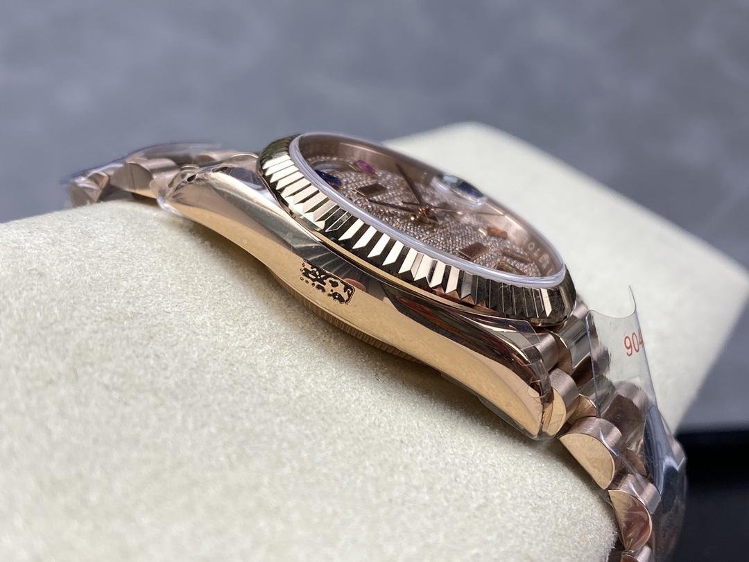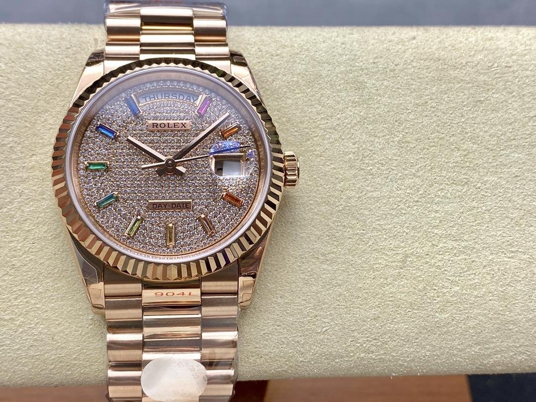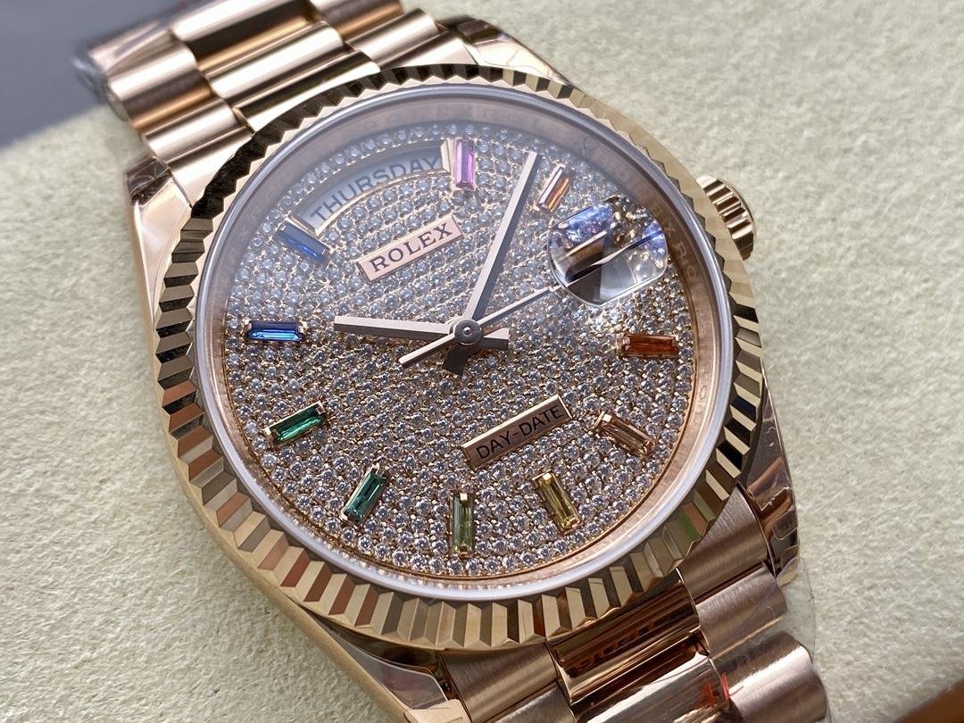Rolex Day Date 36 watch with pav?? diamond dial and 18K Everose gold fluted bezel 128235 0039 President
