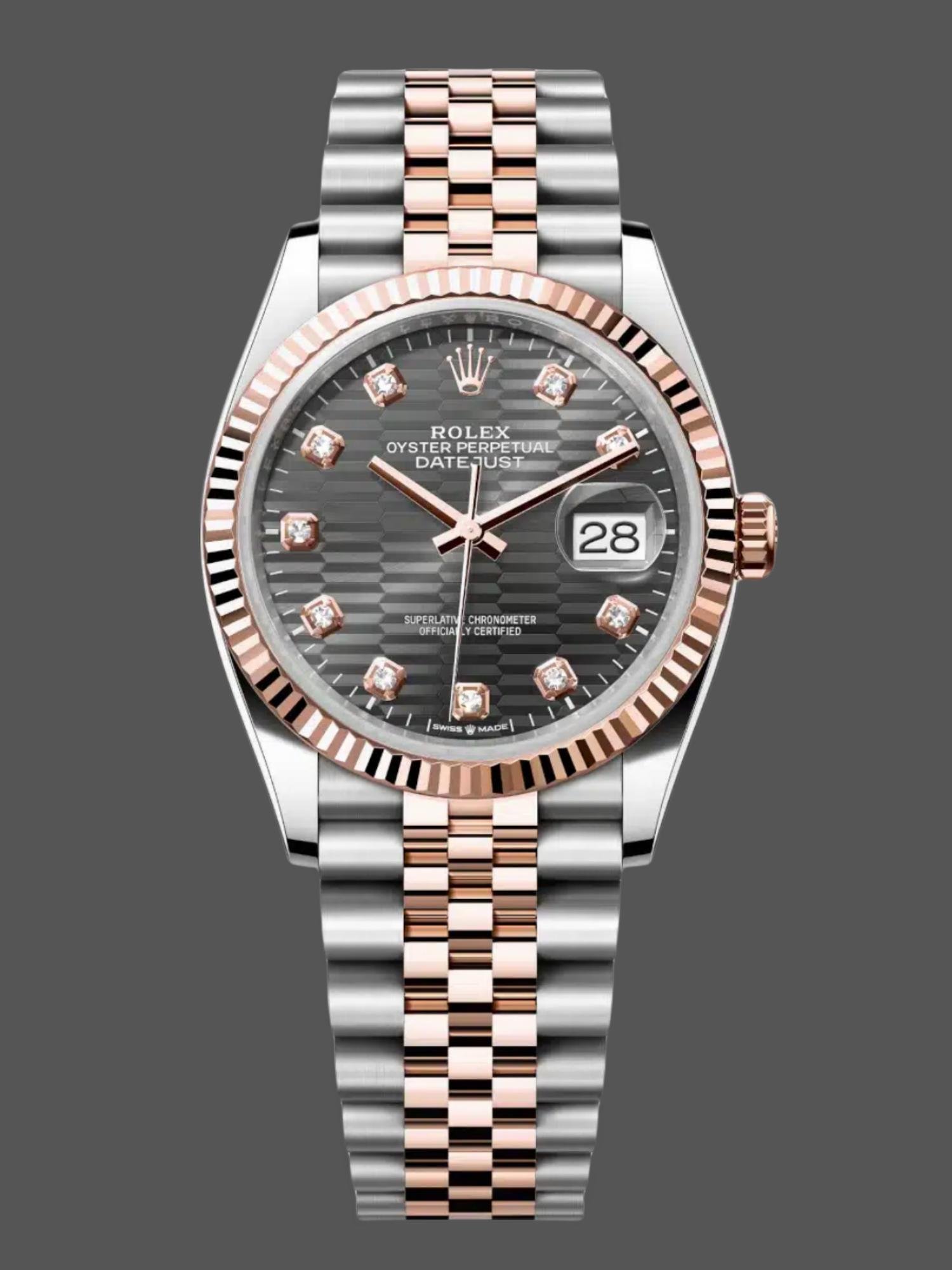 Unisex Rolex Datejust 36 18K Everose Gold Watch with Fluted Bezel 126231 0041