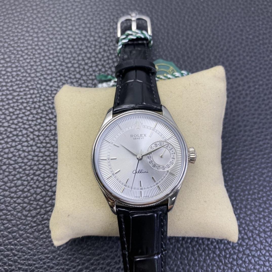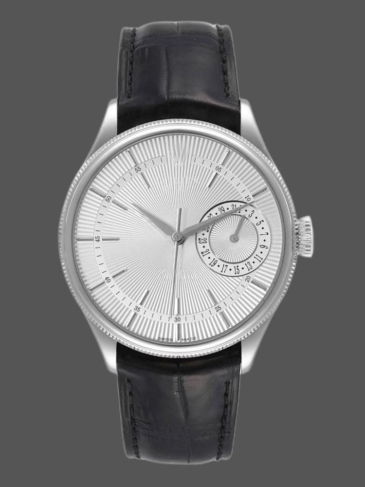 Replica Rolex Cellini Date 50519 men’s watch, black leather and silver dial, 39 mm