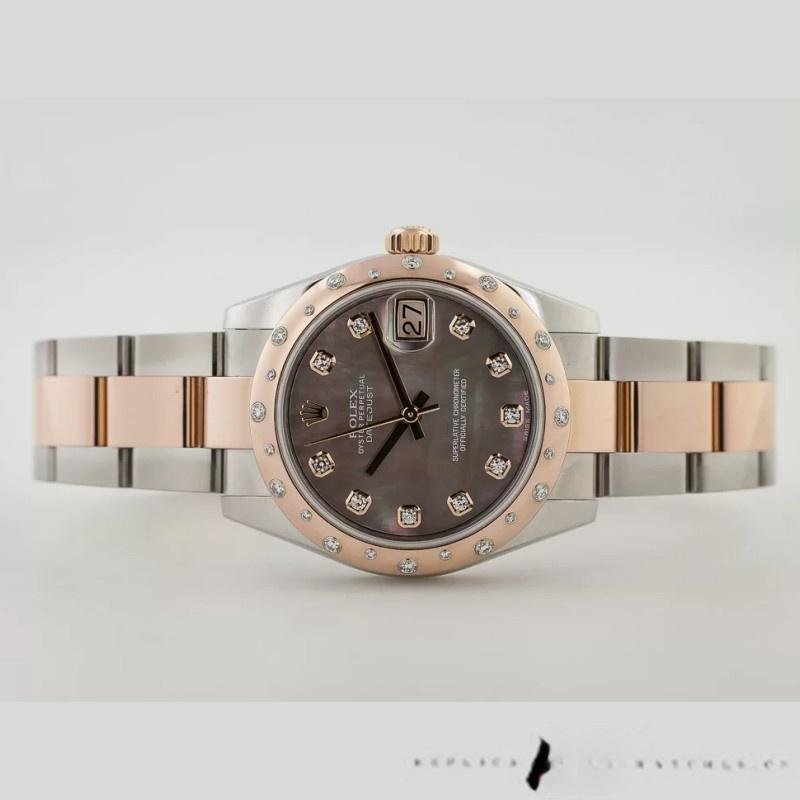 Replica Rolex Datejust 178341 women’s watch, 31 mm dial, with diamonds and black mother-of-pearl