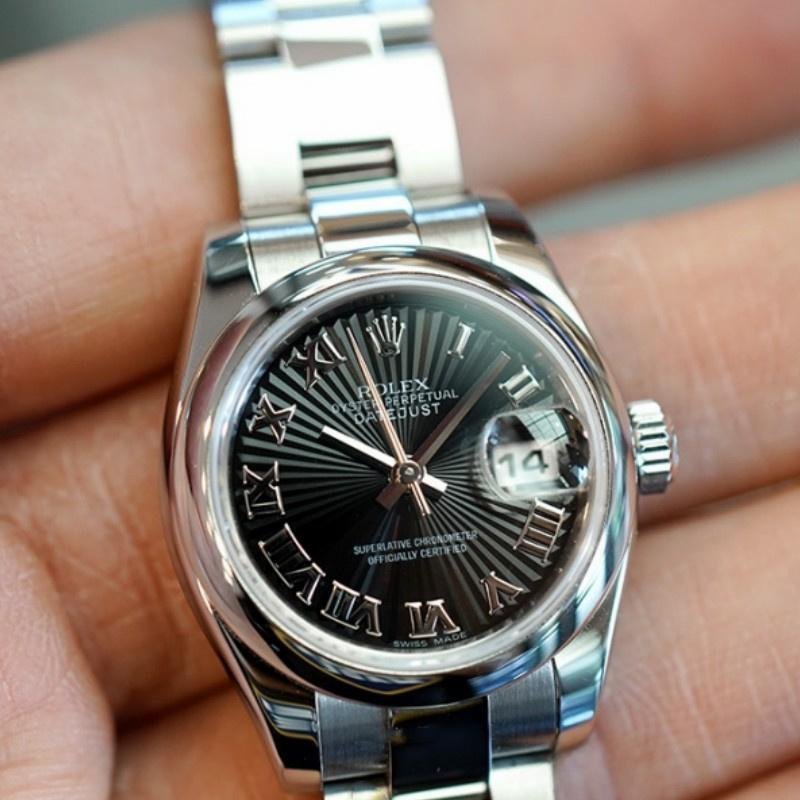 Rolex Datejust 179160 Women’s Watch Replica Oyster Bracelet Black Roman Dial Sunbeam 26mm