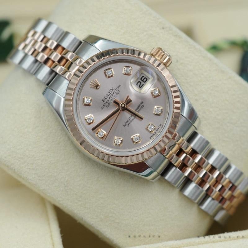 Automatic: Lifetime water resistant, Swiss: 30 meters, TOP: 100 meters Availability: Available item Return policy: If you are not satisfied with our product, please return your watch within 30 days for a full refund. Condiciones return. Rolex Datejust 179171 women’s watch with pink diamond dial and 26mm fluted bezel. 26mm stainless steel case with rose gold crown. Rose gold fluted bezel. Pink dial with diamond hour markers. Date display window located at the 3 o’clock position. Two-tone rose gold and stainless steel jubilee bracelet. Customer reviews