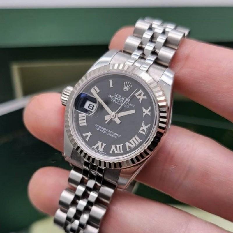 Rolex Datejust 179174 Women’s Watch Replica Black Roman Dial Fluted Bezel 26mm