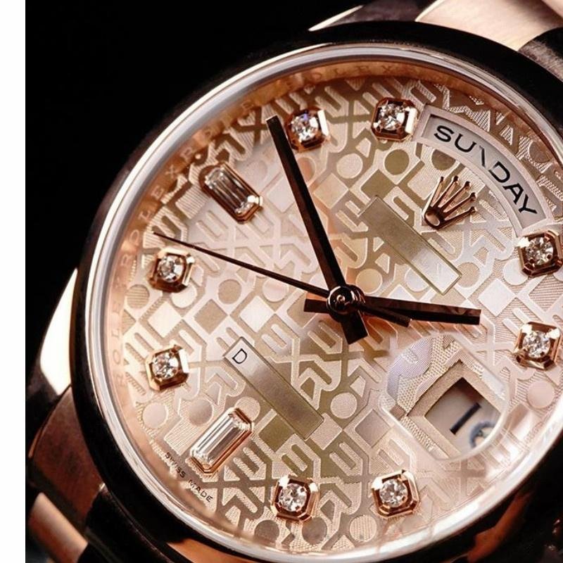 Rolex Day-Date 118205 replica watch, rose gold, diamond dial, 36 mm, unisex