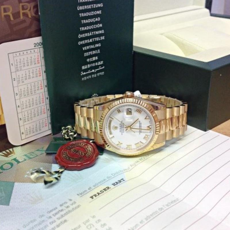 Replica Rolex Day-Date 118238 unisex watch, yellow gold, white dial, fluted bezel, 36 mm