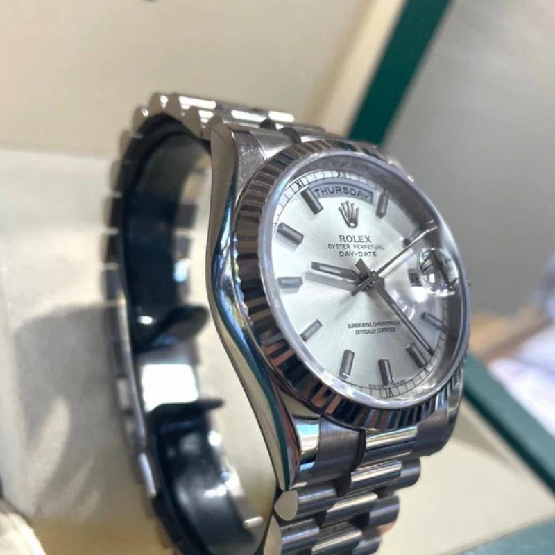 Replica Rolex Day-Date 118239 unisex watch, white gold, silver dial, fluted bezel, 36 mm
