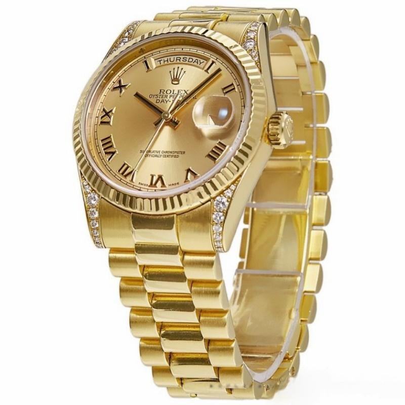 Replica Rolex Day-Date 118338 Unisex Watch, Champagne Roman Dial, Diamond Bezel, 36mm