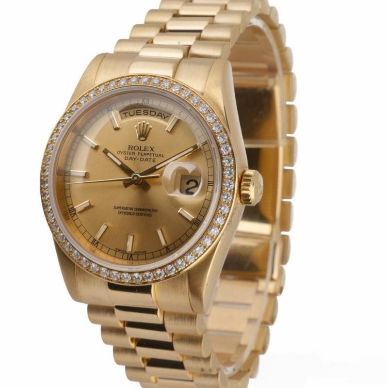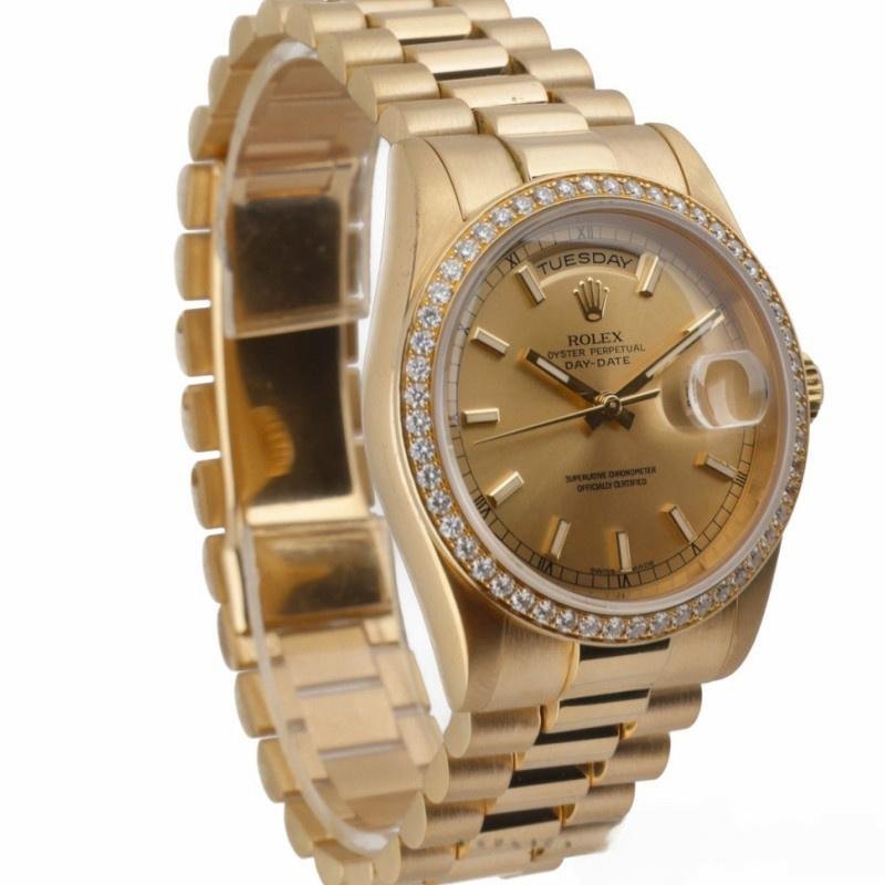 Replica Rolex Day Date 118348 unisex watch, dial with champagne indexes, 36 mm yellow gold