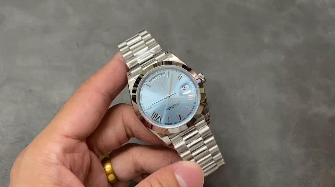 Rolex Day-Date 228206 Men’s Watch Replica Ice Blue Quadrangular Dial Platinum 40mm