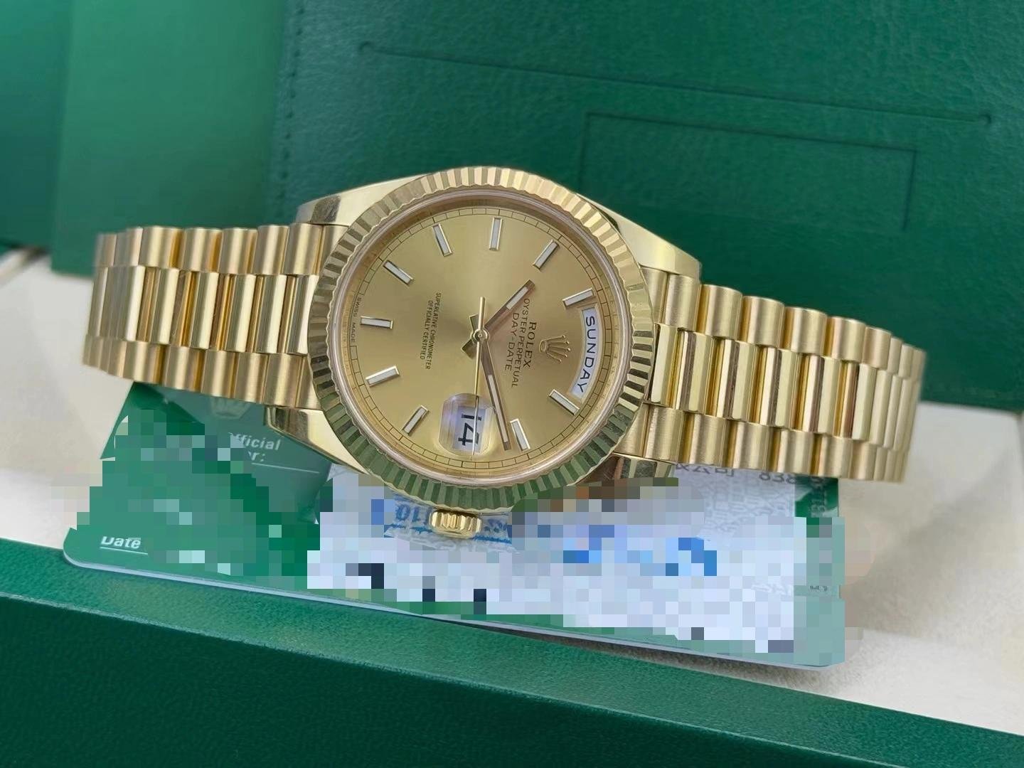 Rolex Day-Date 228238 Men’s Watch Replica Champagne Diamond Dial Fluted Bezel 40mm