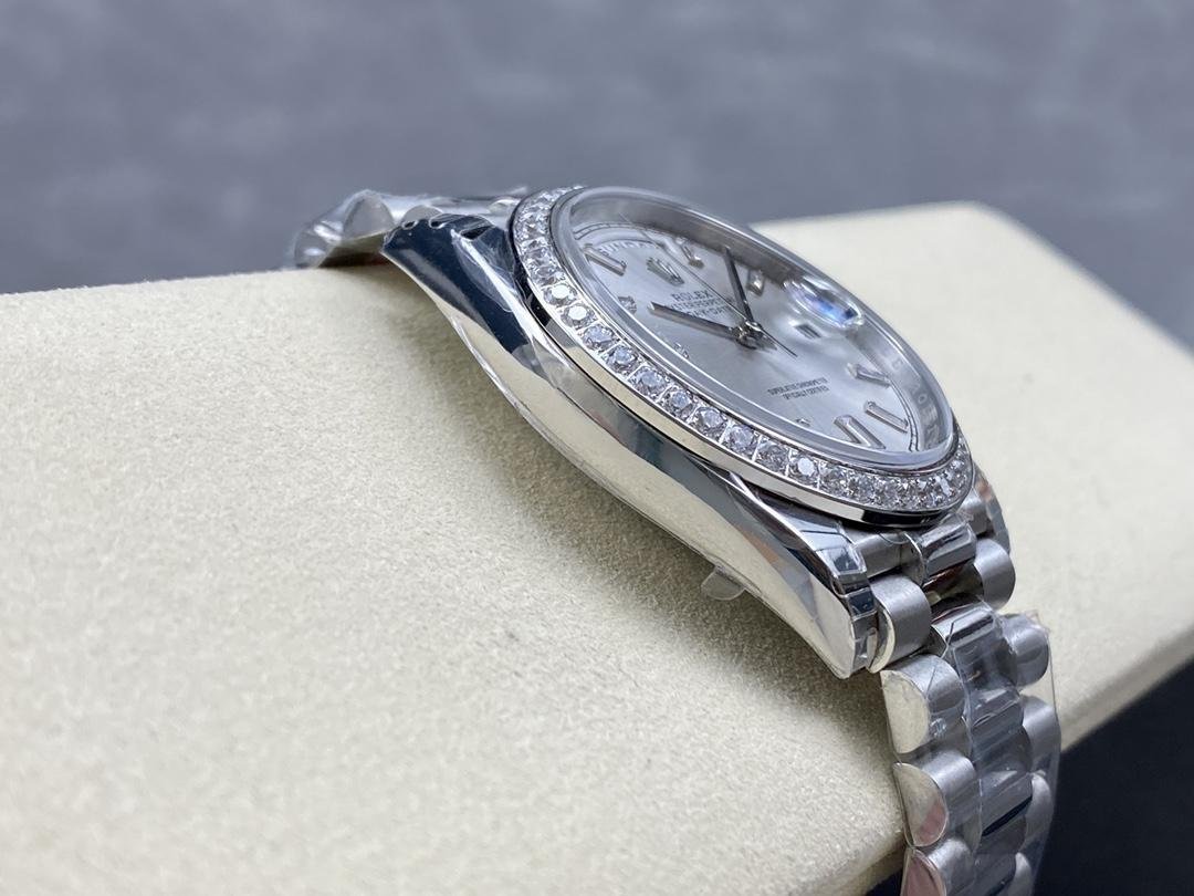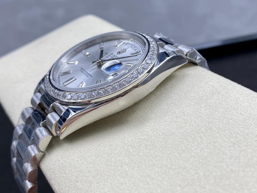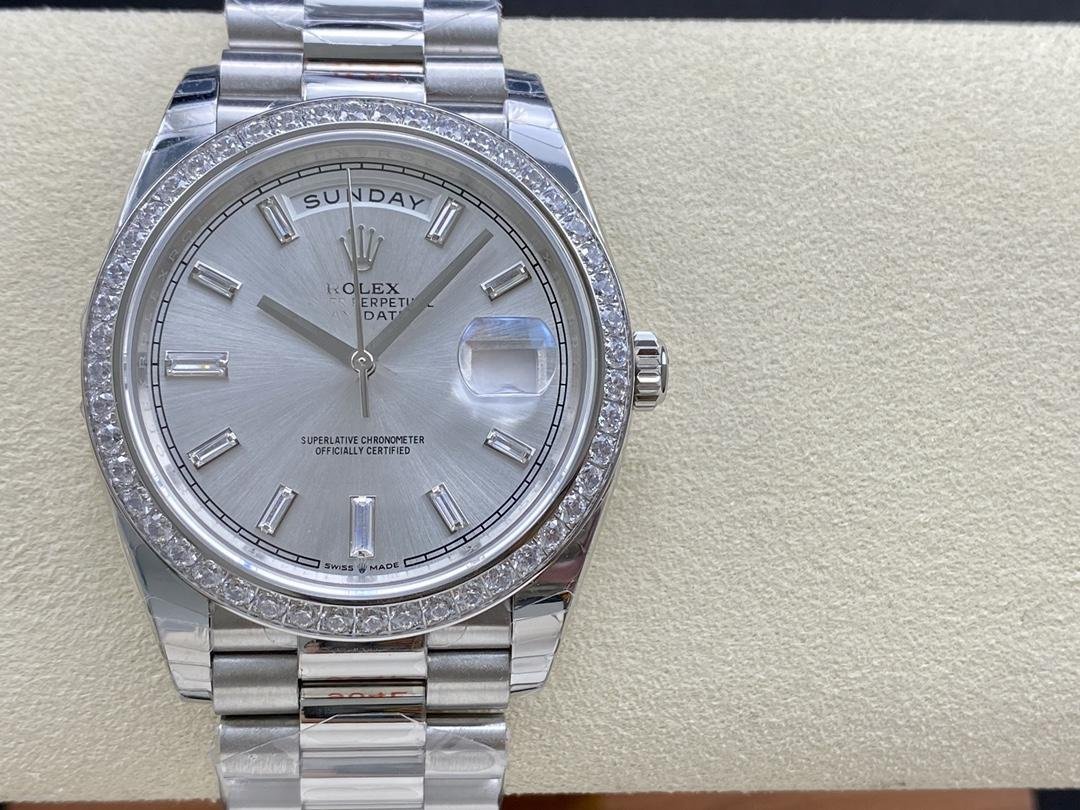 Rolex Day-Date 228349RBR Men’s Watch Replica Silver Dial Diamond Bezel 40mm