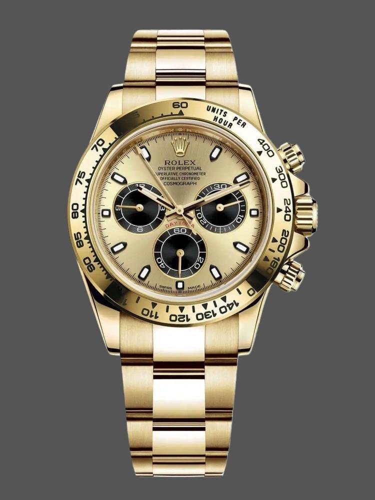 Rolex Daytona 116508 Men’s Watch Replica Yellow Gold Champagne Index Dial 40mm