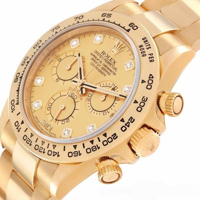 Rolex Daytona 116508 Men’s Replica Watch Yellow Gold Champagne Diamond Dial 40mm