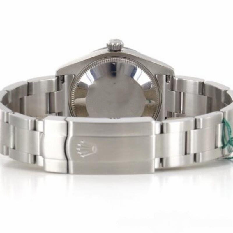 The Rolex Oyster Perpetual 177210, stainless steel women’s replica with 31 mm black dial, it features a 31mm round stainless steel case with screw-down crown and turned bezel. Black dial with hour markers. The reliable stainless steel Oyster bracelet will look perfect on your wrist.
