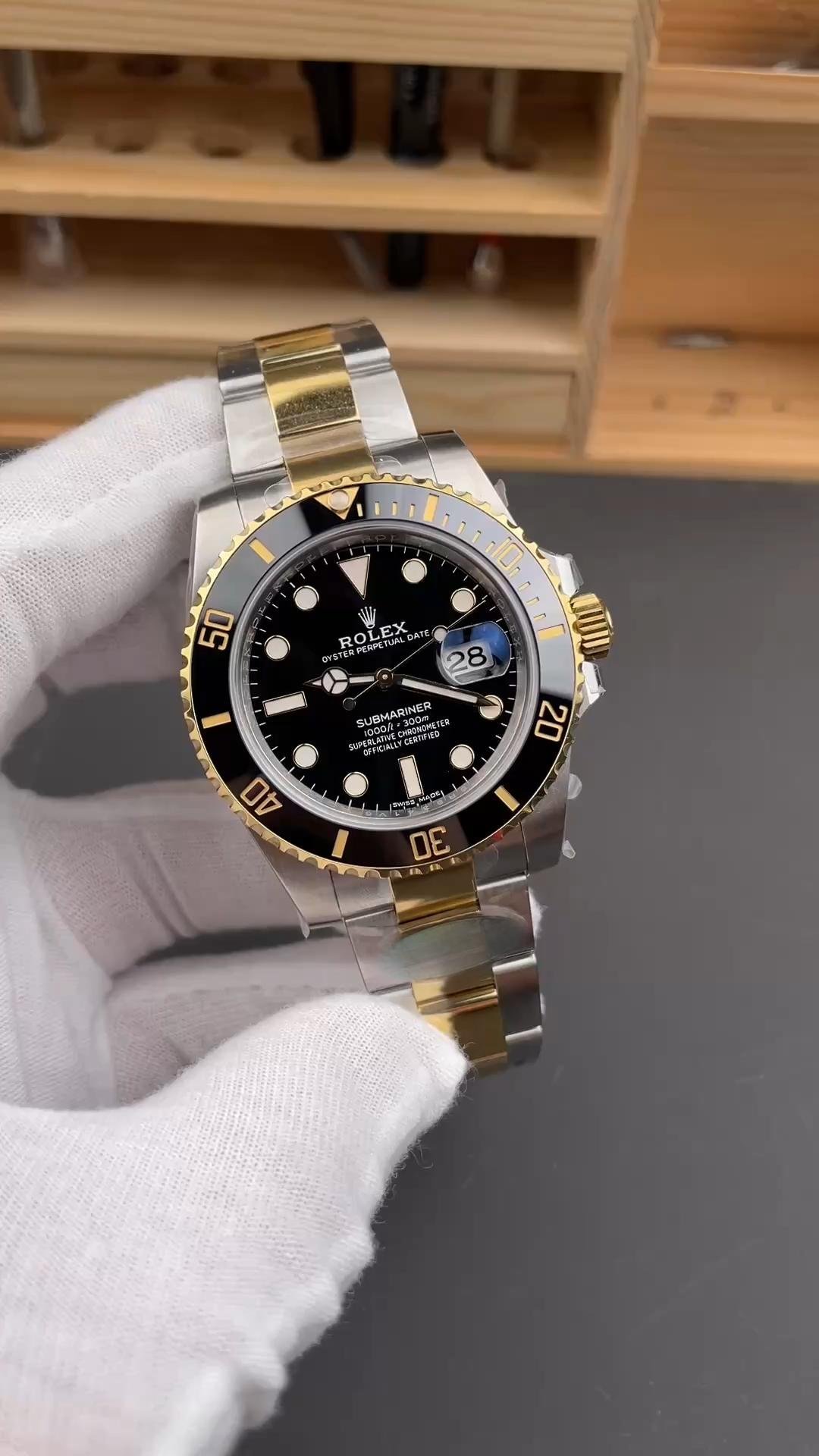 Tags: 41 mm, caja de dos tonos, correa de acero inoxidable, esfera negra, Para hombre