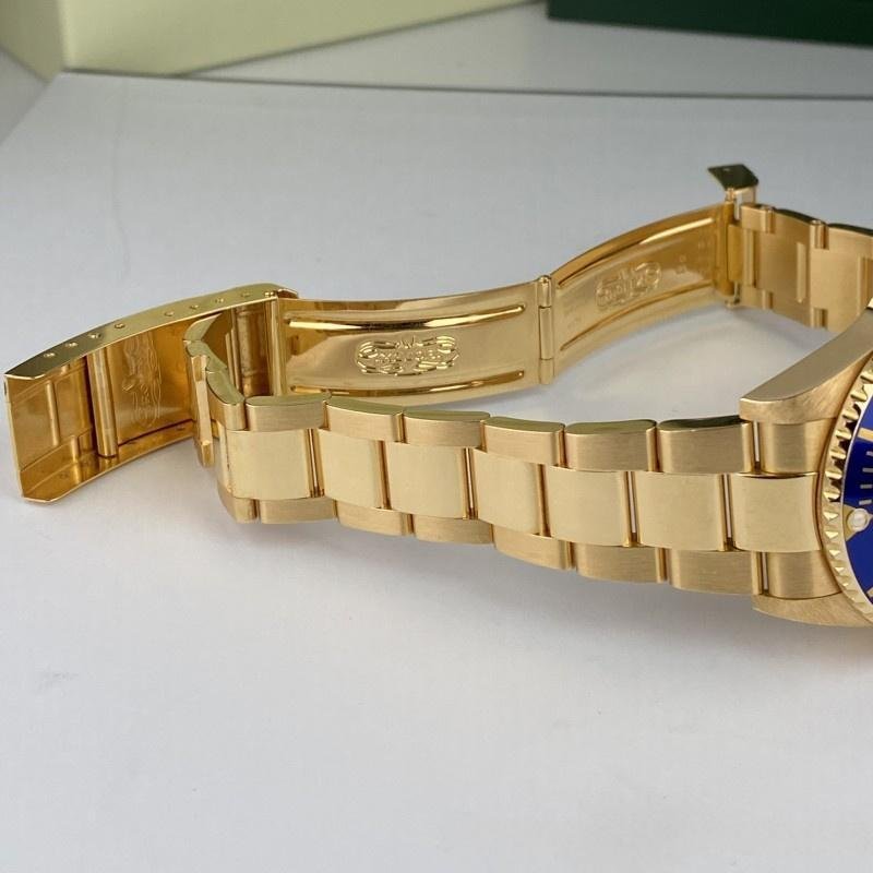 | Box Color: Yellow gold Box material: Stainless steel Bezel color: Blue Bezel material: Ceramic Bezel: Ribbed Crown: Screw-on, Twinlock double tightness system Crystal: Scratch resistant Sapphire | |