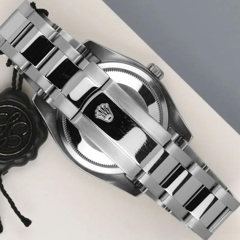 Rolex Datejust 116244 bronze watch with floral Arabic dial and 36 mm diamonds, unisex replica. The 36mm diameter three-body solid case, bracelet, slightly curved handles and white gold bezel with diamonds are polished/brushed. The dial is made of bronze with a delicate floral design, Arabic indexes and a Rolex crown at 12 o’clock. At 3 o’clock, it has an instant date window with a magnifying cyclops lens. Scratch-resistant sapphire crystal and screwed crown with Twinlock double sealing system.