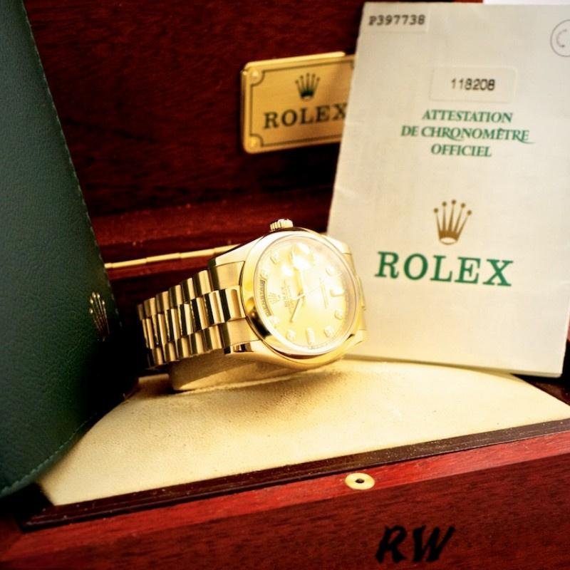 Replica Rolex Day-Date 118208 Unisex Watch, Yellow Gold, Champagne Diamond Dial, 36mm