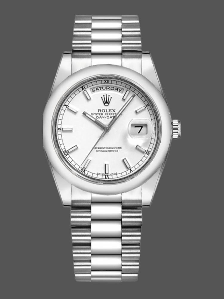 Replica Rolex Day-Date 118209 unisex watch with Oyster bracelet, white dial, 36 mm