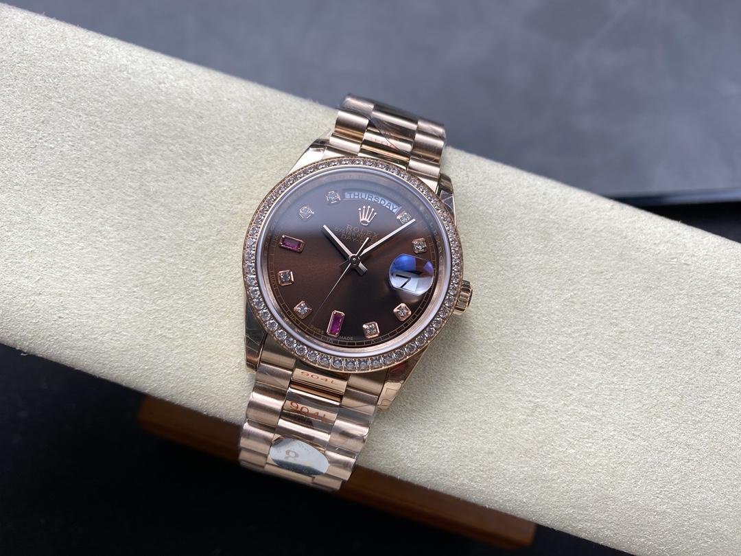 Replica Rolex Day-Date 118235 unisex watch, rose gold, chocolate brown dial, 36 mm