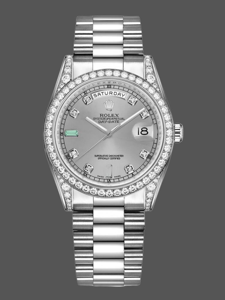 Replica Rolex Day-Date 118389 unisex watch, white gold, silver dial, 36 mm