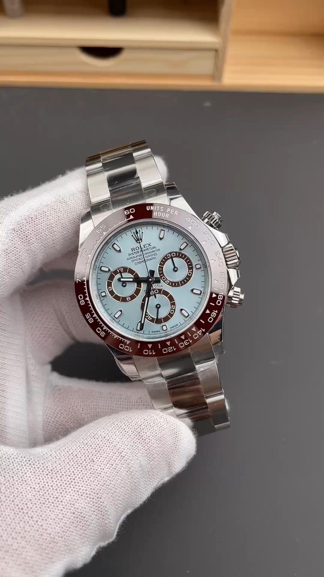 | Sphere: | Ice blue and dial with chestnut brown counter rings |