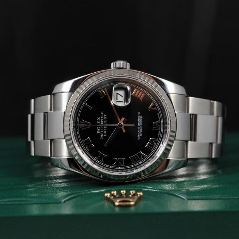 Rolex Datejust 116234 replica, black dial, Roman numerals, 36 mm, unisex