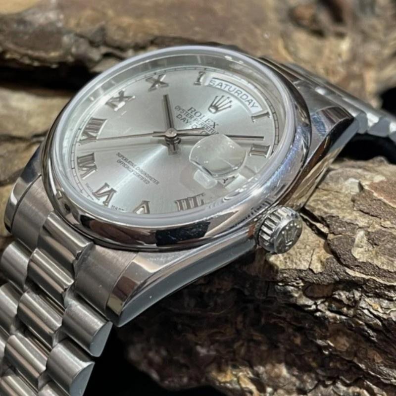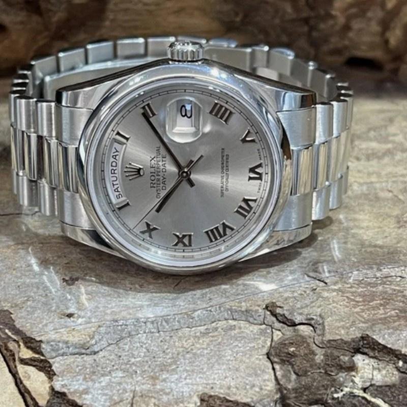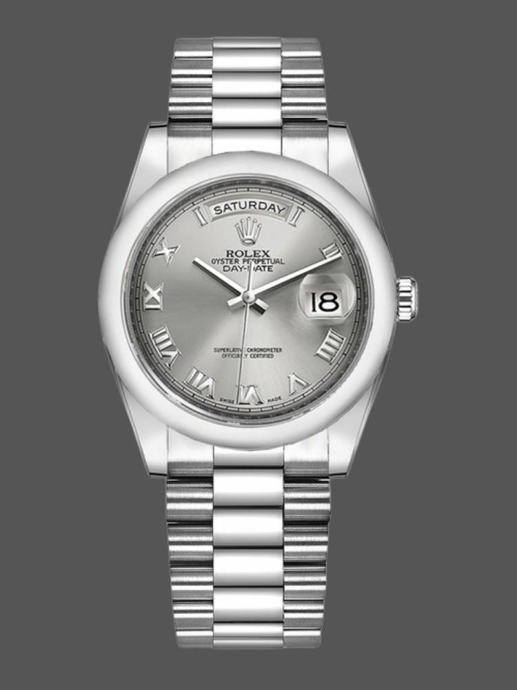 Rolex Day-Date 118206 Replica, Rhodium-plated Gray Dial, Roman Numerals, 36mm, Unisex