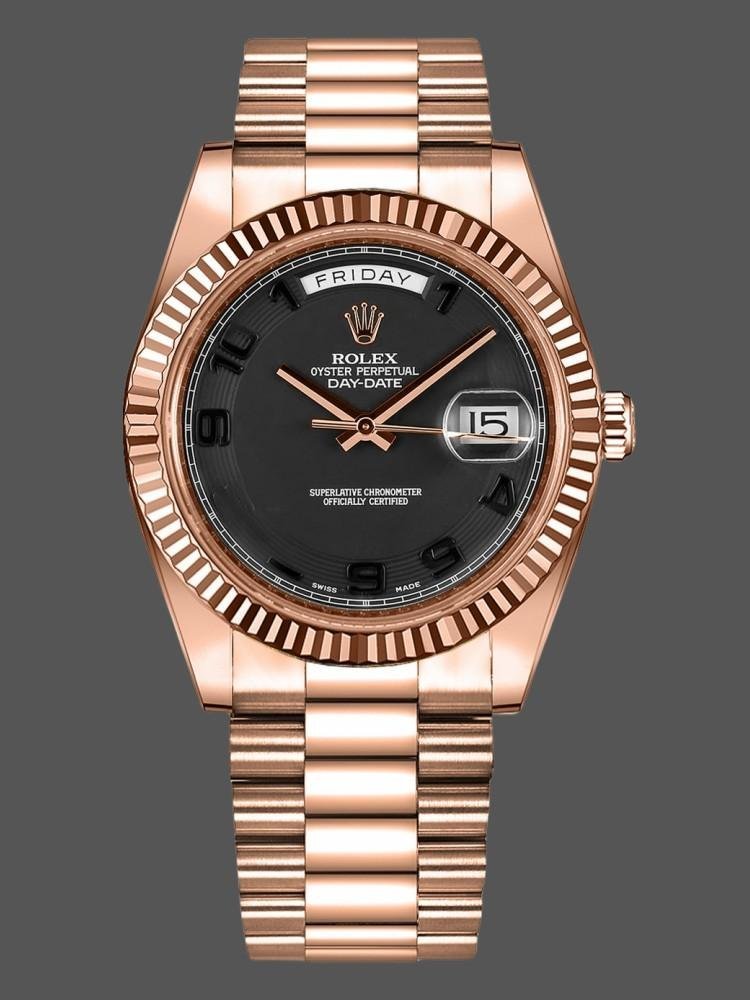 Rolex Day-Date 218235 Replica Men’s Black Concentric Arabic Dial Rose Gold 41mm