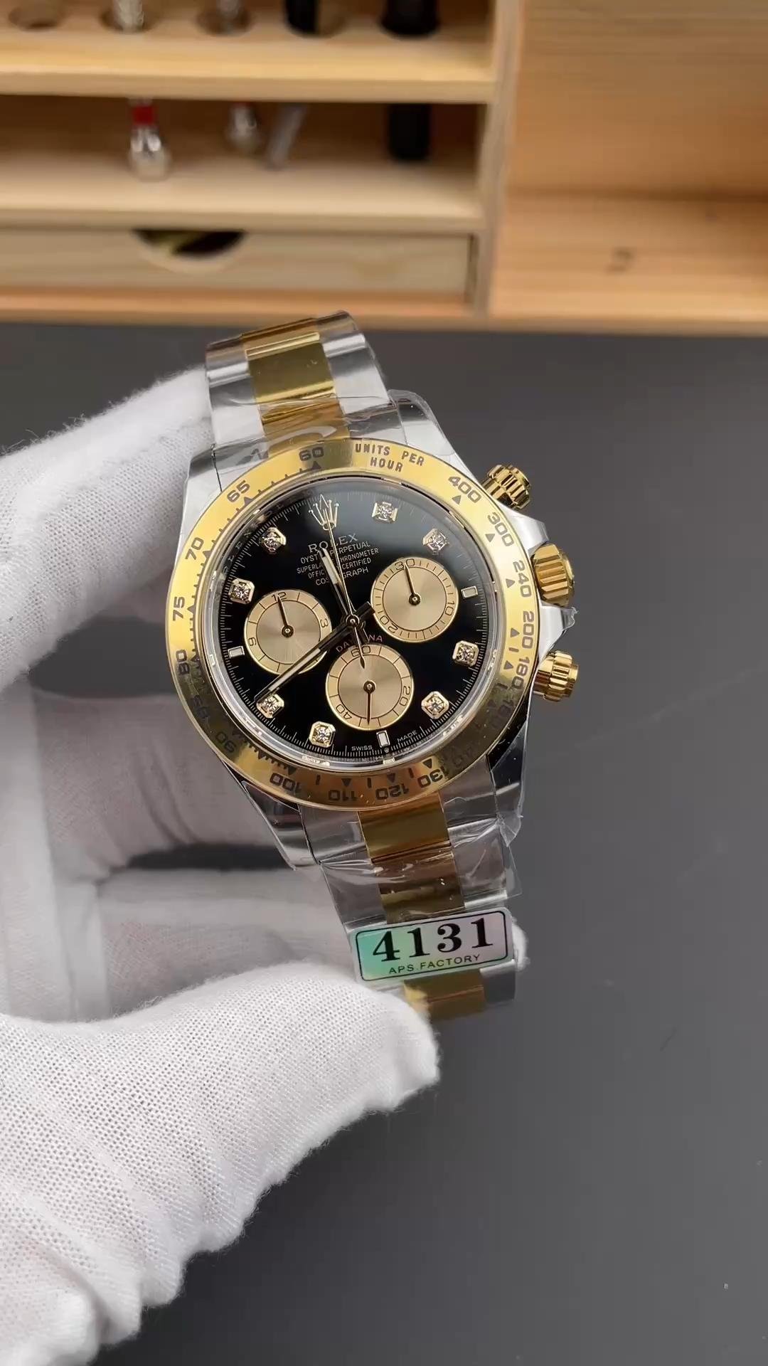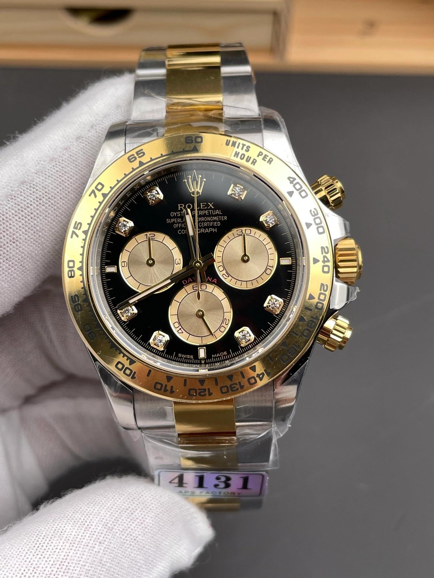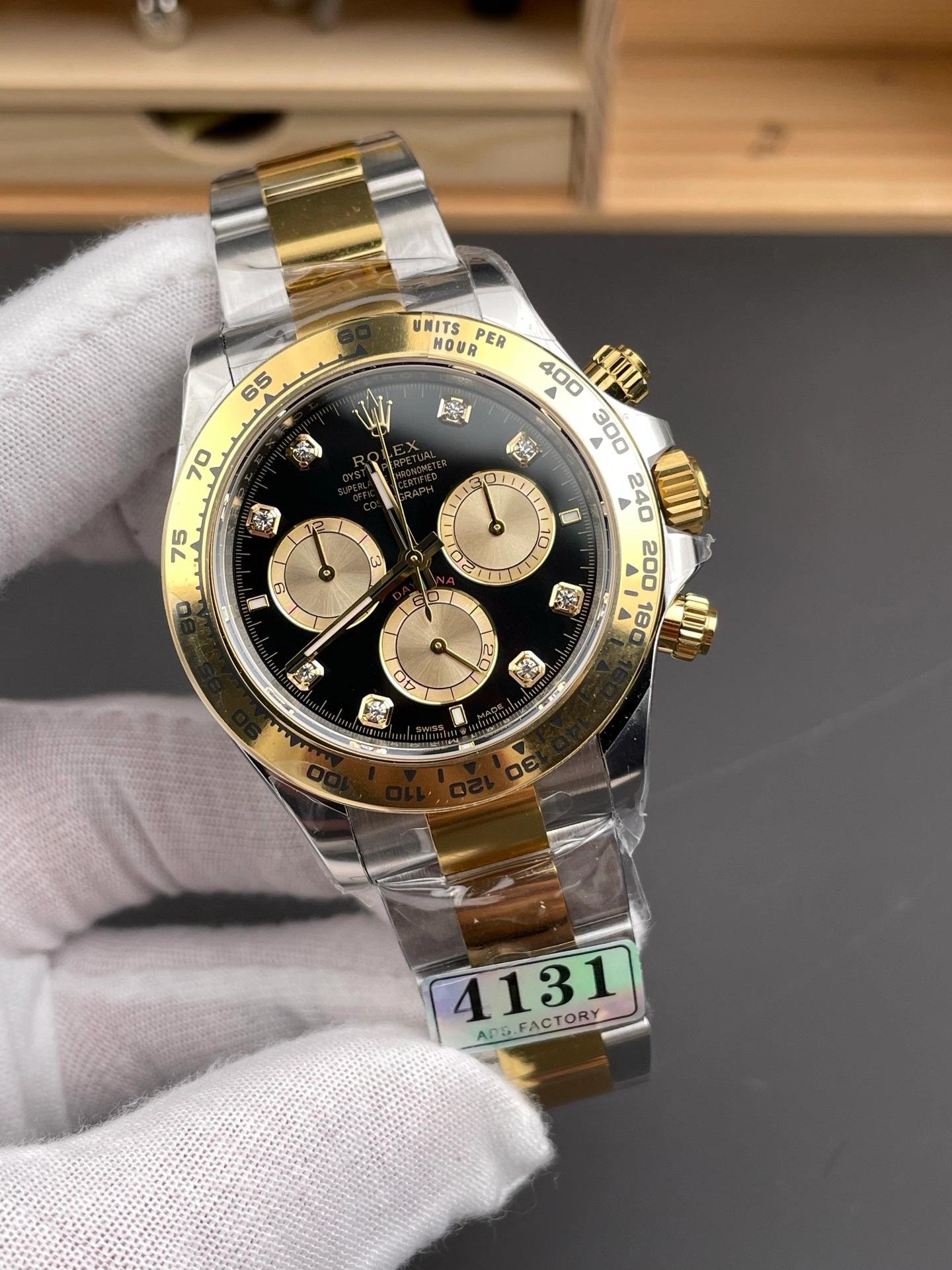 Replica of the two-tone Rolex Daytona 126503 0002 with black diamonds