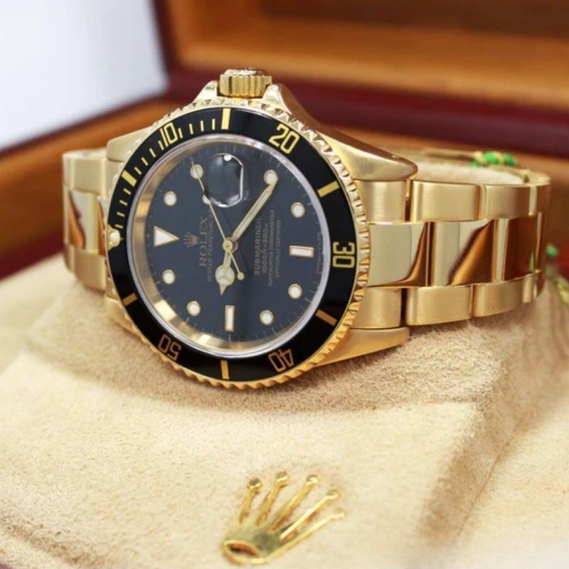 Replica Rolex Submariner 16618 for men, yellow gold, black dial, 40 mm