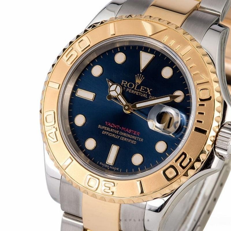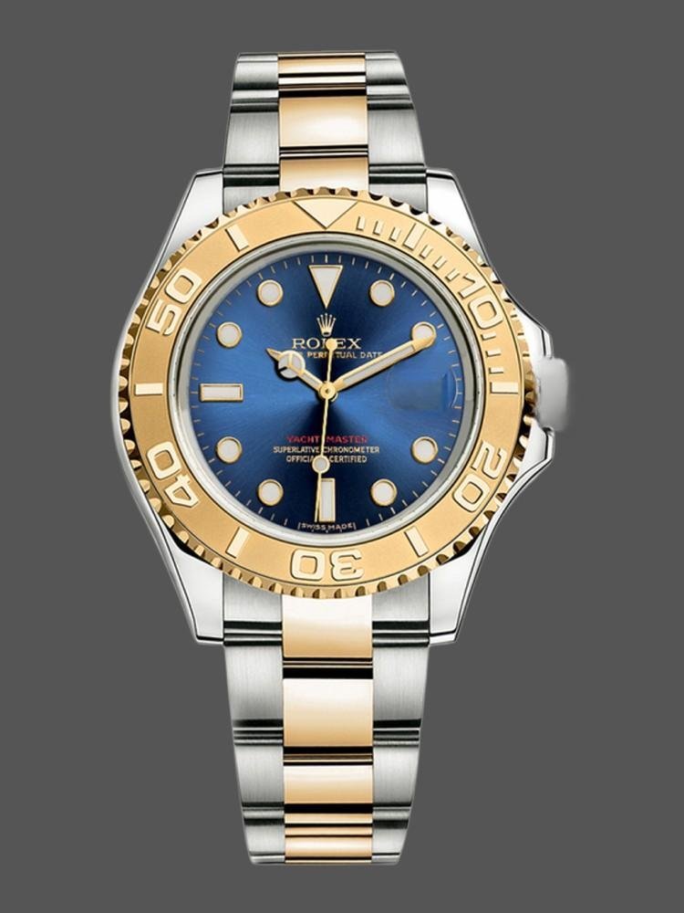 Replica Rolex Yachtmaster 16623 for men, steel, yellow gold, blue dial, 40 mm
