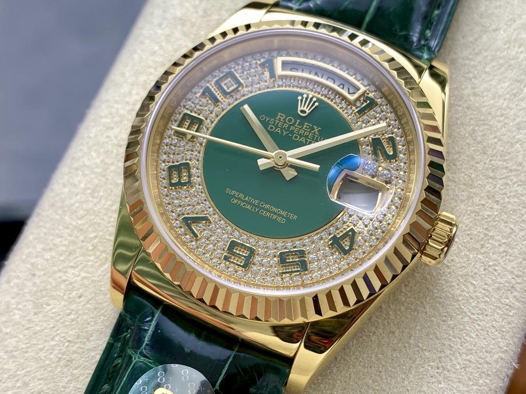 Rolex Day Date 36mm Green Dial Diamond Set Bezel President Bracelet M128398tbr 0035 -41%Limited