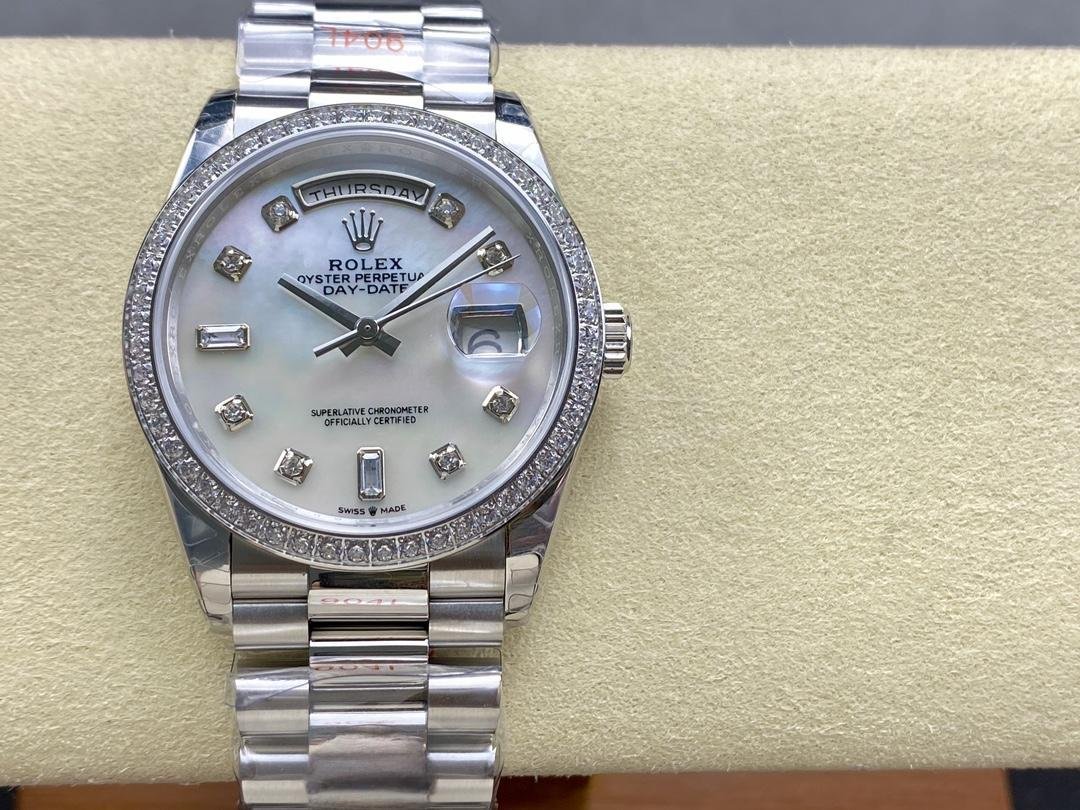 Rolex Day Date 36 Mother of Pearl Dial Diamond Bezel Platinum m128396tbr 0022 -41%Limited