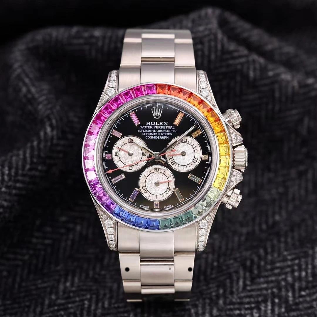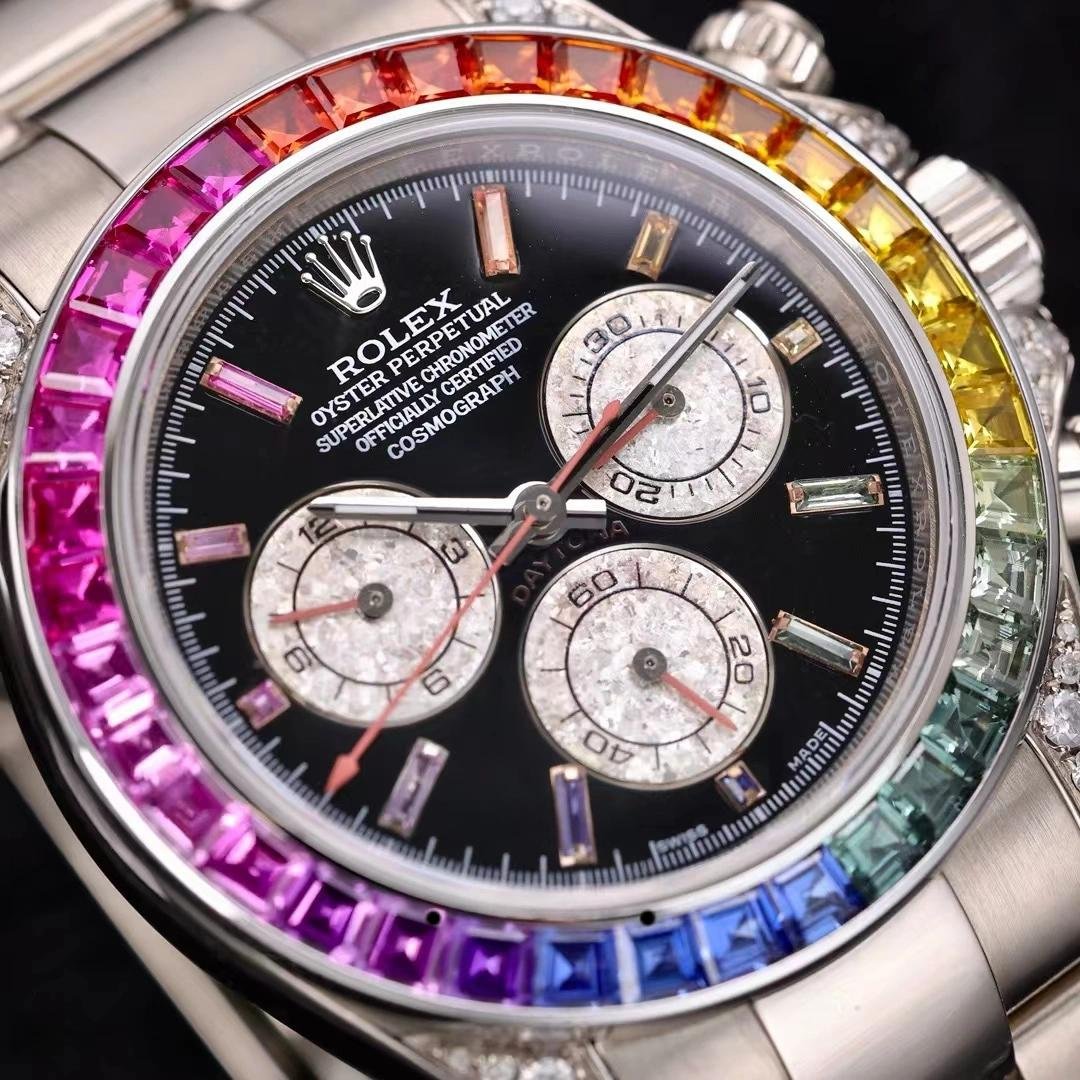 Rolex Daytona 116599RBOW Rainbow White Gold Black Dial Sapphire Bezel