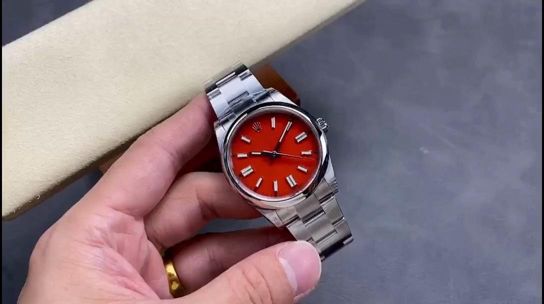 Rolex Oyster Perpetual Coral Red Dial Oyster Bracelet 126000 0007