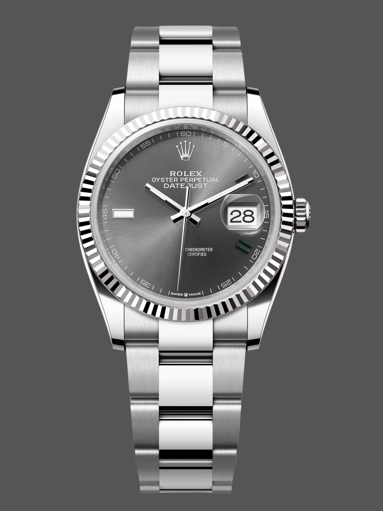 Replica Rolex Datejust 126231 0029 Gray Slate Wimbledon Roman Dial and Fluted Bezel 36mm -33%Limitado