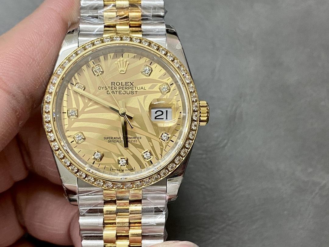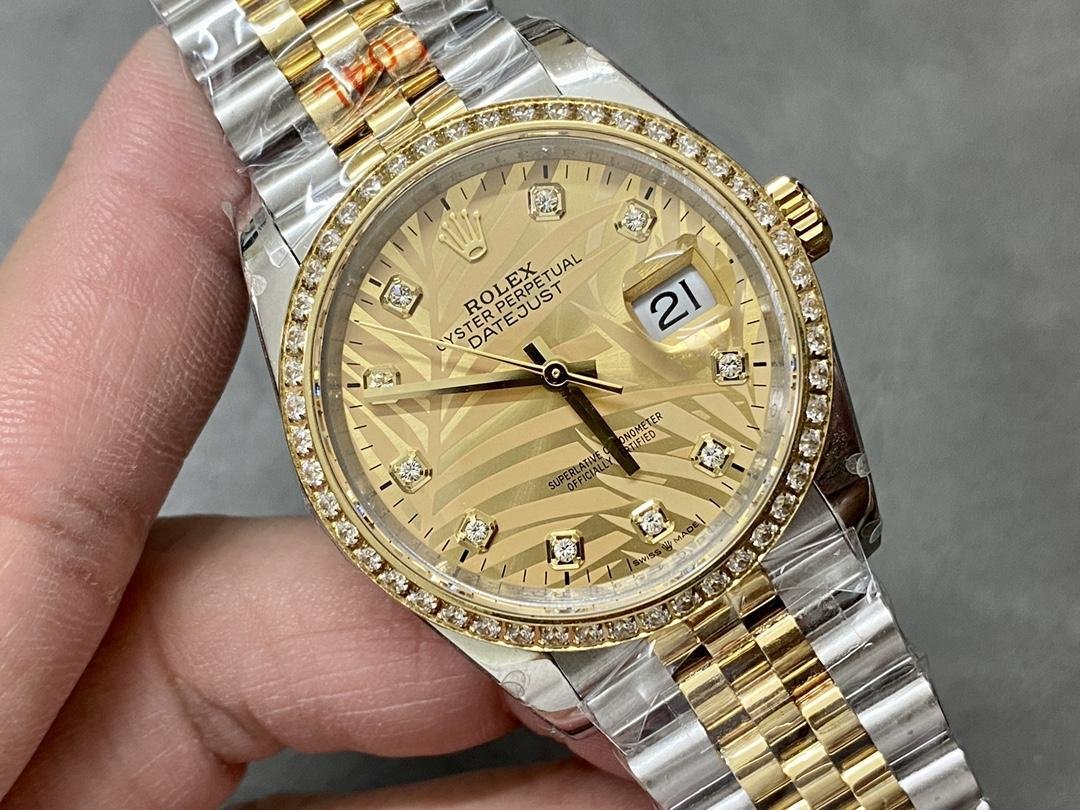 Rolex Datejust 36 watch with gold palm motif 126283RBR 0023, Jubilee dial and bracelet