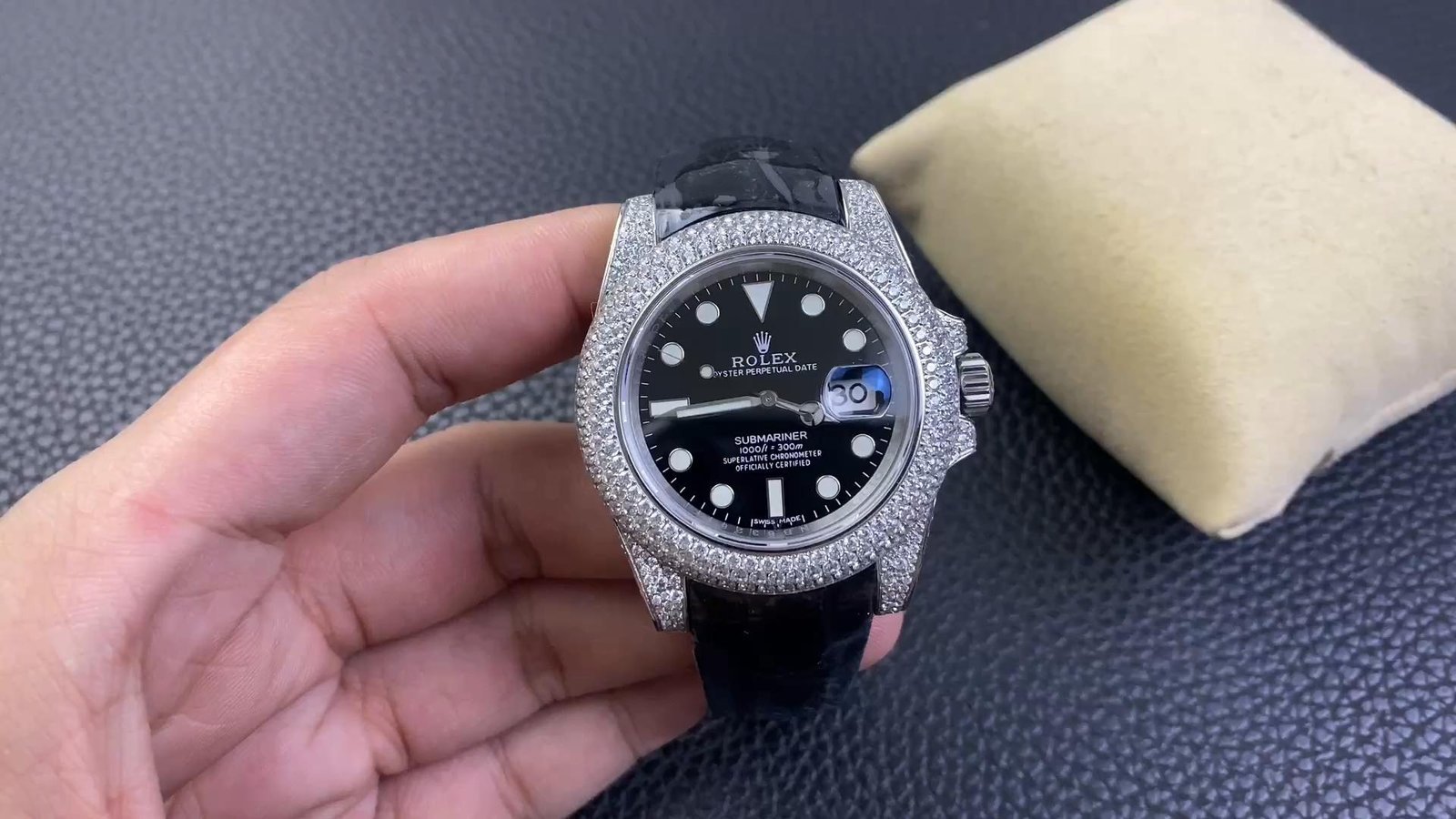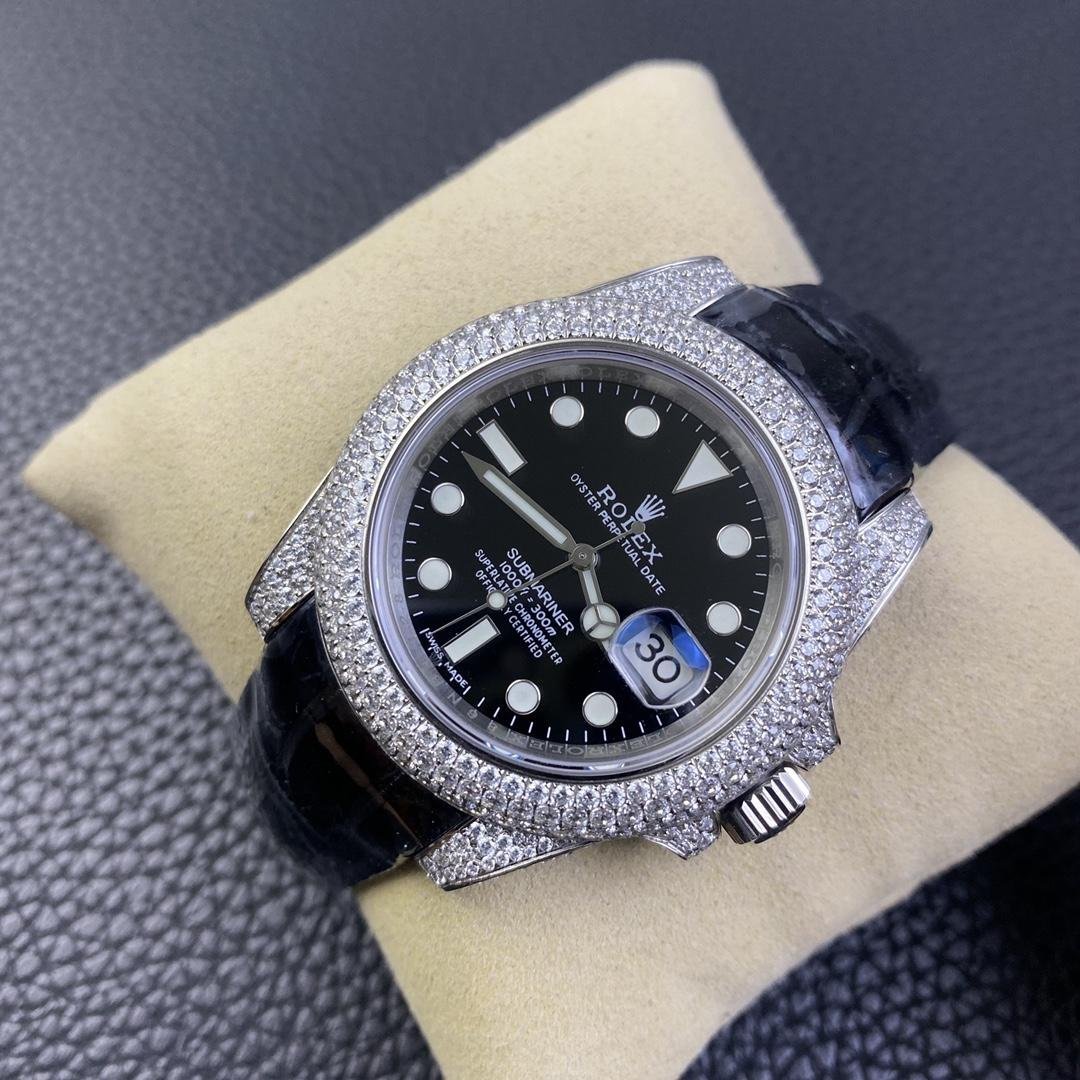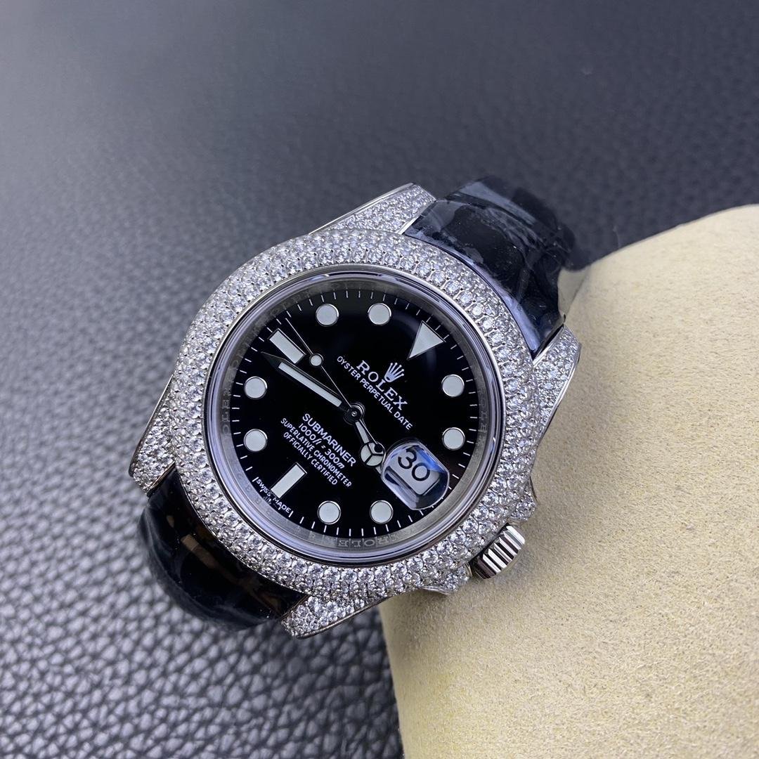 Rolex Submariner watch with diamond case and 40 mm black dial 116610 for men