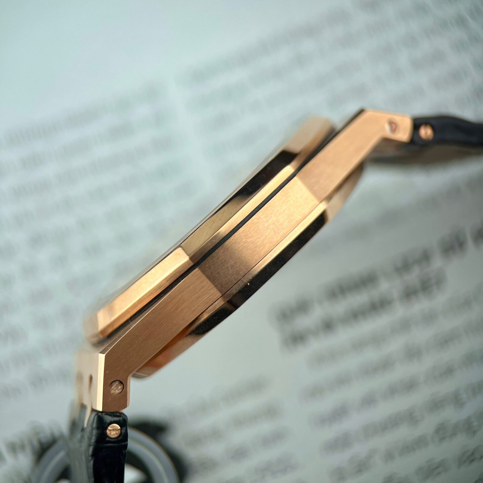 Replica Audemars Piguet Royal Oak 15500OR watch with black leather strap wrapped in 41 mm rose gold