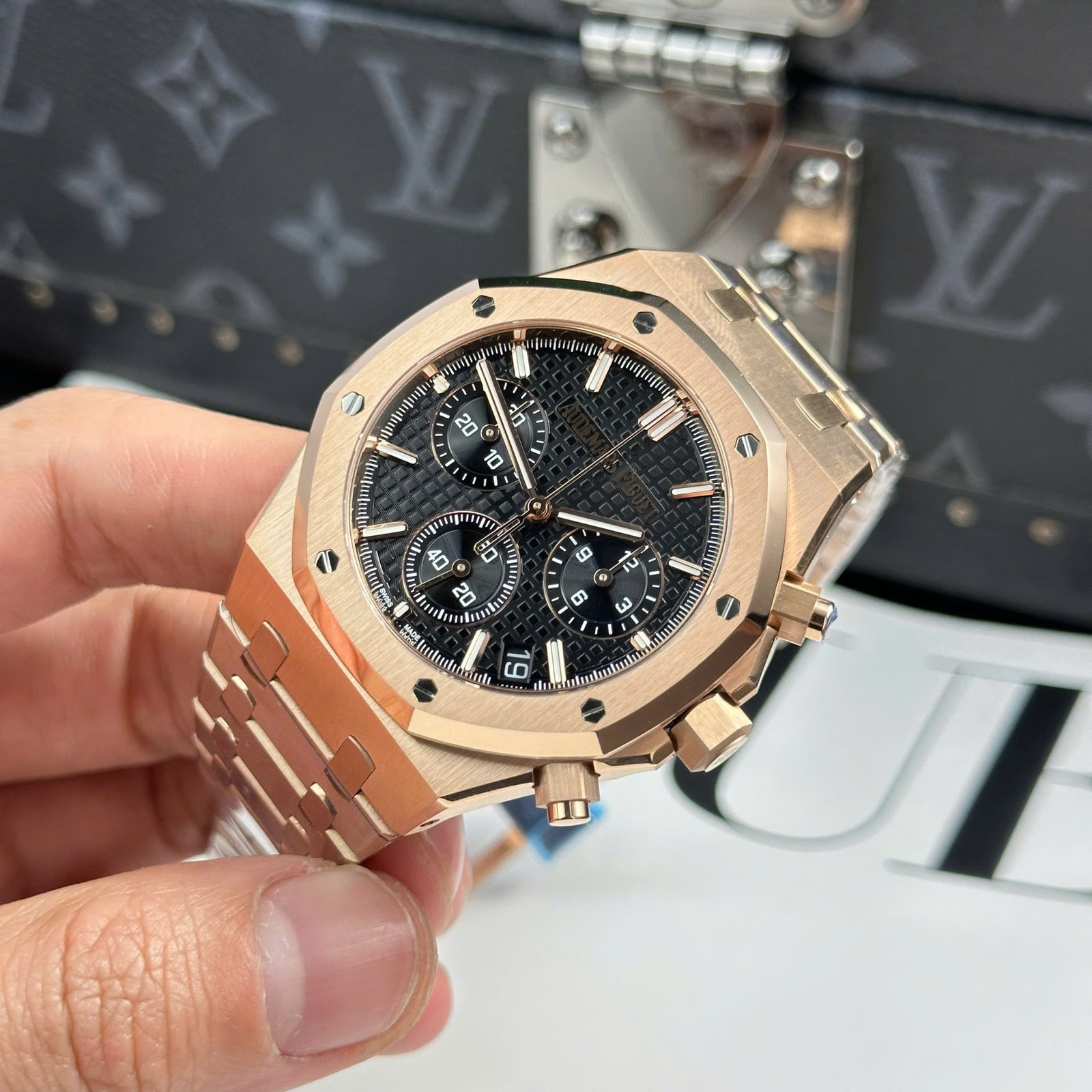 Audemars Piguet Royal Oak 26240 Replica Watch, Rose Gold Dial, Black, APS Factory, 41mm