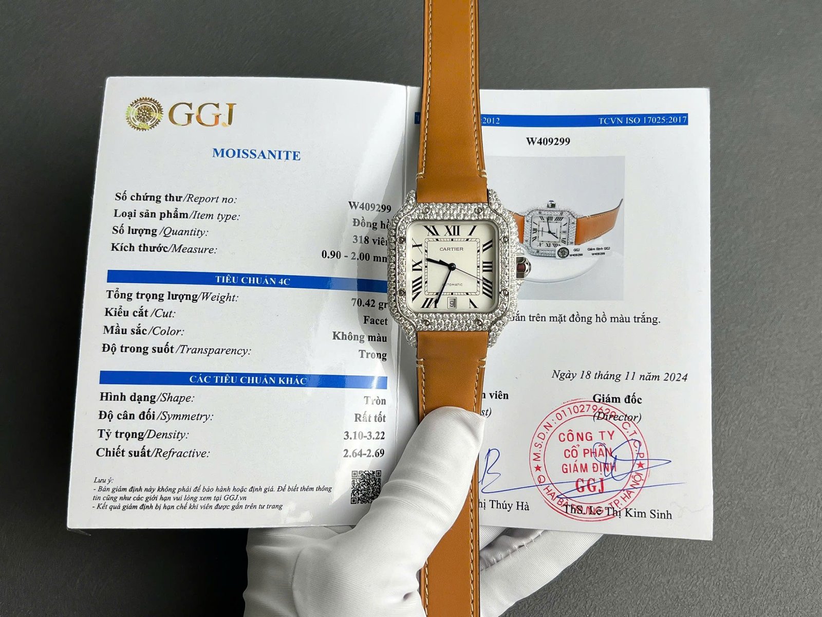 Replica Cartier Santos watch with white dial, custom diamonds, factory BV moissanite, 39.8 mm