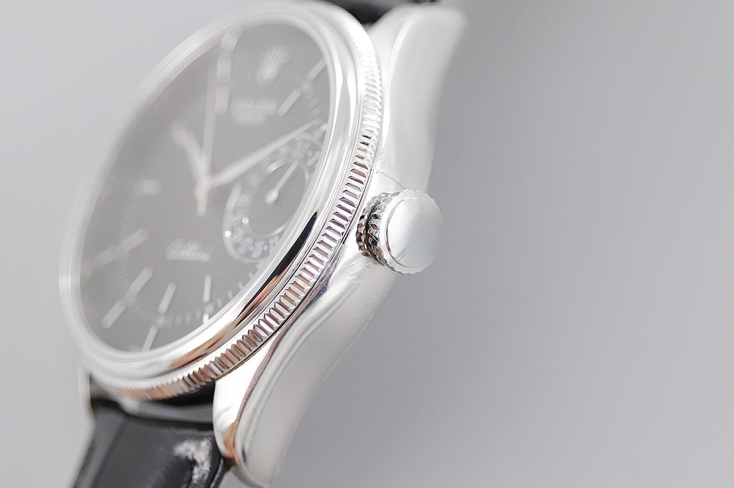 Replica Rolex Cellini Date 50519 Men’s Black Leather Black Dial Watch 39mm