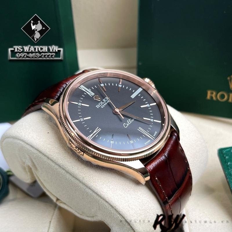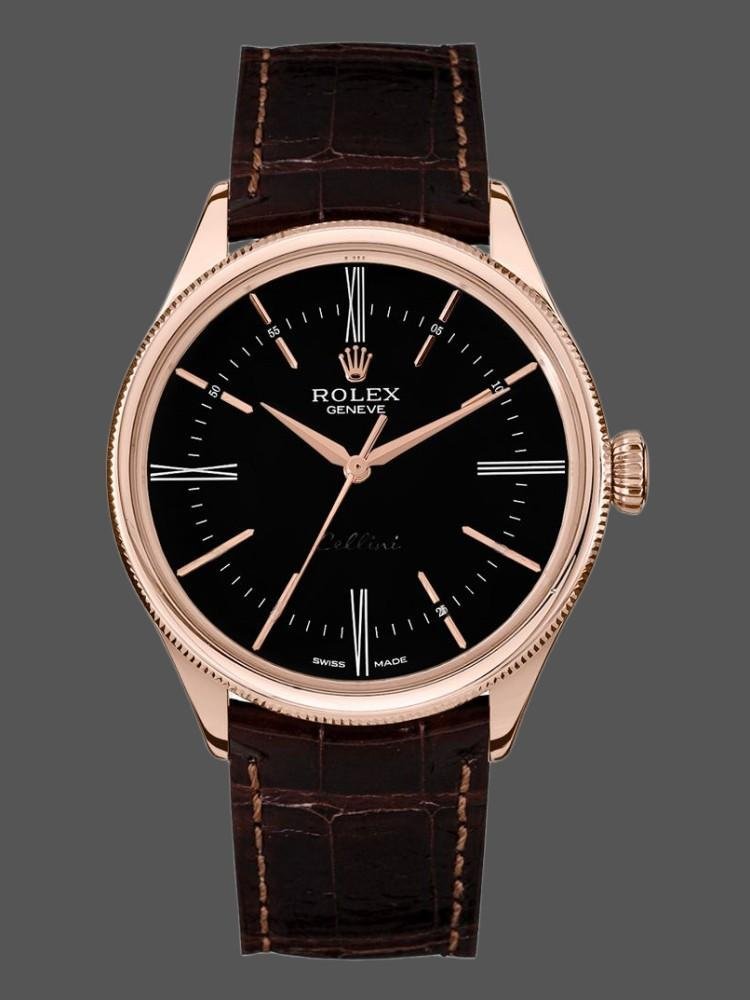 Rolex Cellini Time 50505 Men’s Watch Replica Brown Leather Strap Black Dial 39mm