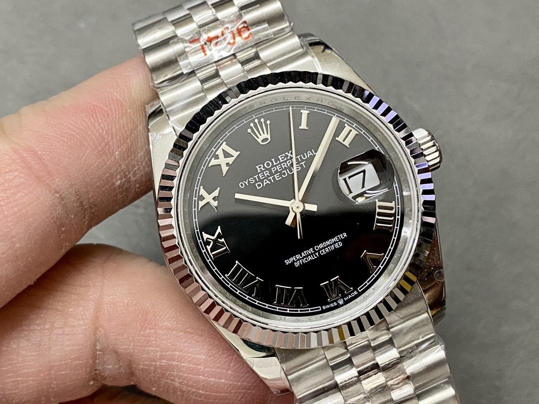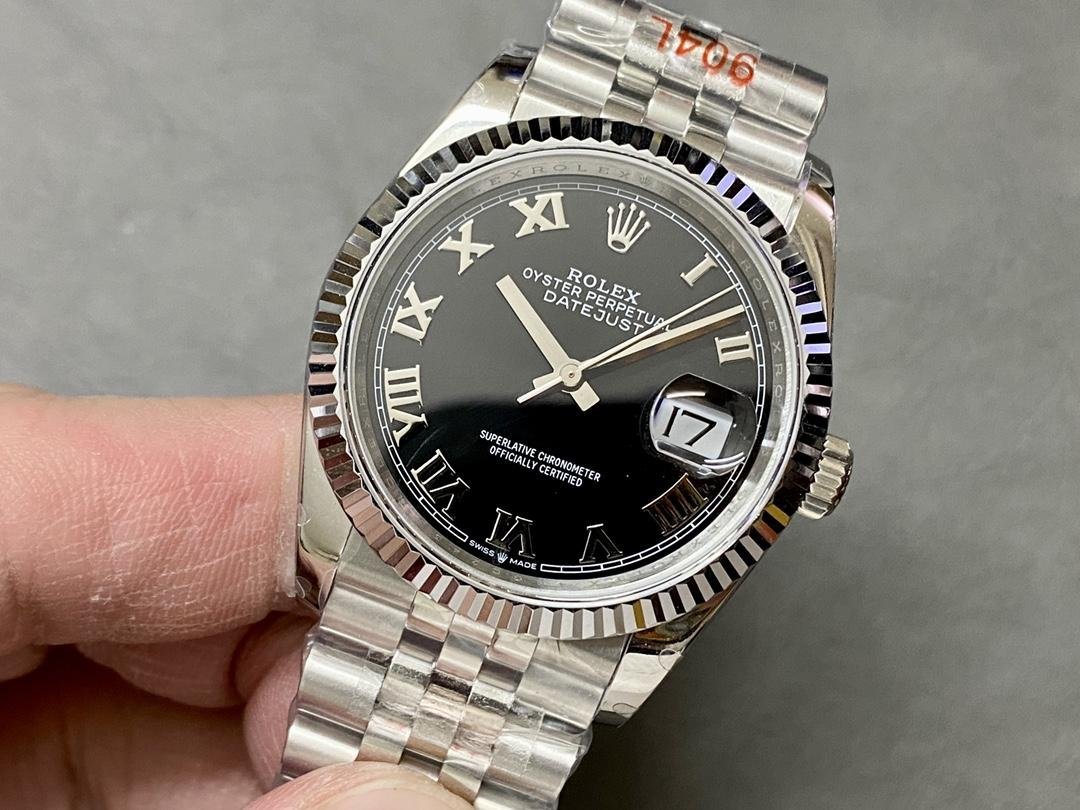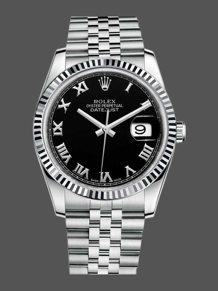Rolex Datejust 116234 Men’s Replica Watch Stainless Steel Fluted Bezel Black Roman Dial 36mm