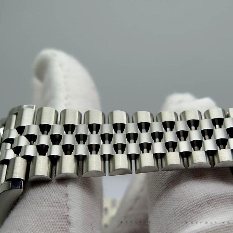 The Rolex Datejust 126234, unisex replica with fluted bezel, pink Jubilee diamond dial and 36 mm, features a 36 mm stainless steel case, bezel Fixed polished solid white gold fluted dial, pink Jubilee dial with diamond indexes, scratch-resistant sapphire crystal, date window under a Cyclops lens at 3 o’clock with instant date adjustment. Jubilee bracelet with five-piece links and Oysterclasp folding clasp with comfortable Easylink extension clasp.