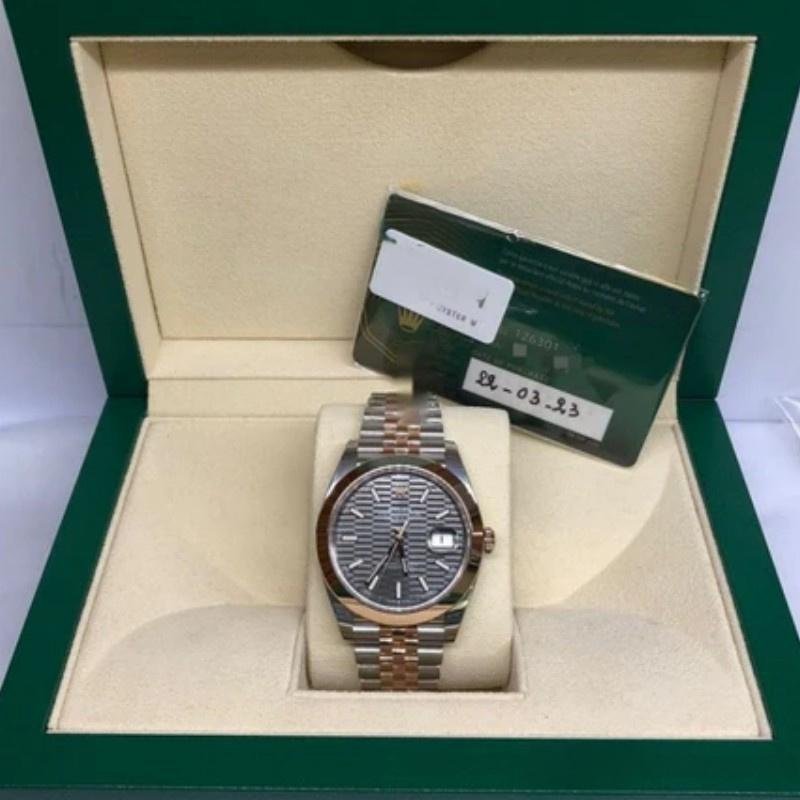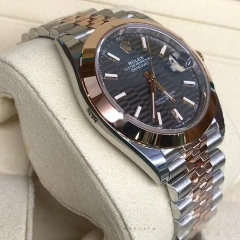 Rolex Datejust 126301 Men’s Rose Gold Slate Gray Dial with Fluted Motif Replica Watch 41mm