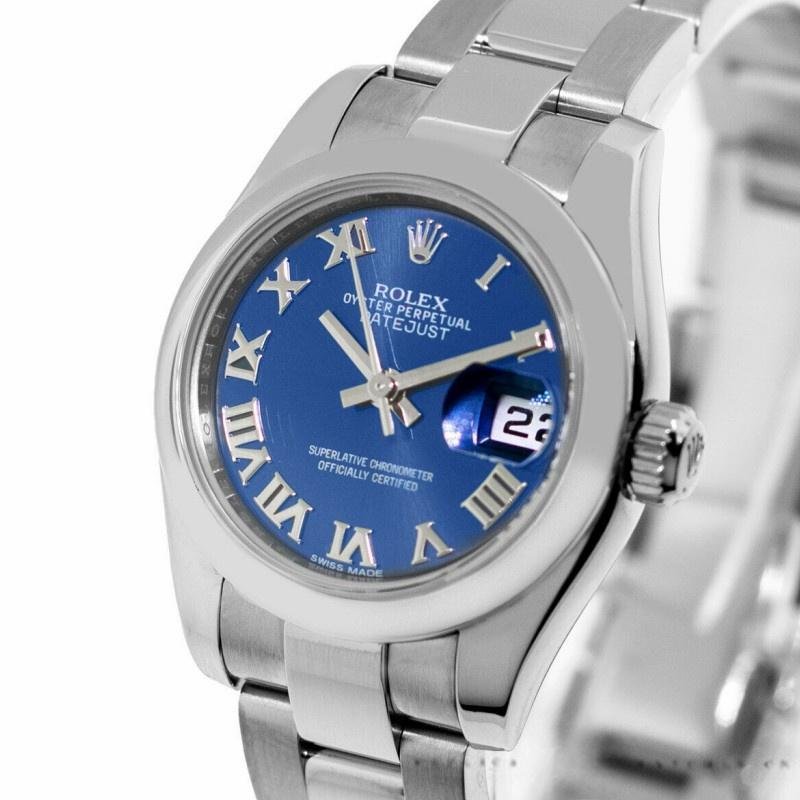 Replica Rolex Datejust 179160 Women’s Watch with Oyster Bracelet, Blue Roman Dial, 26mm