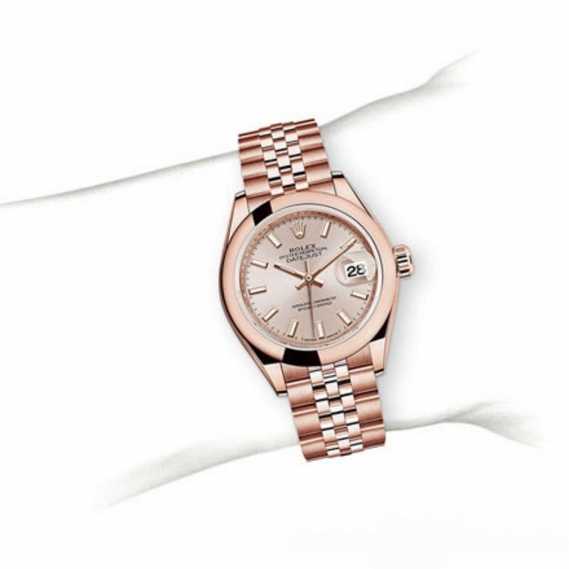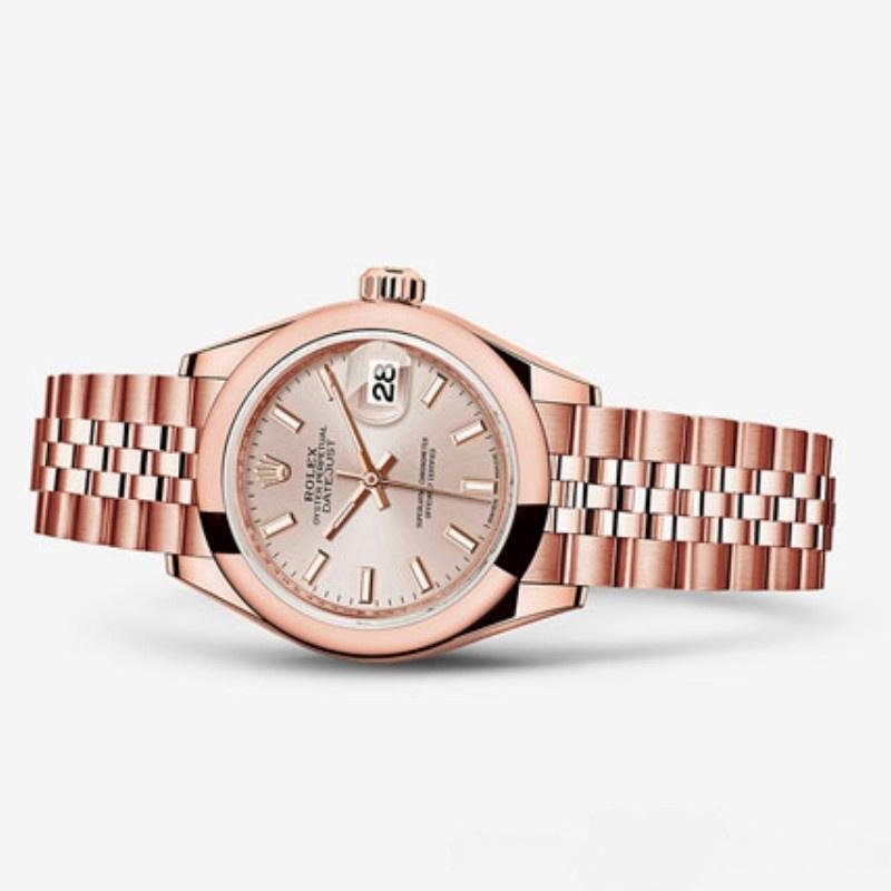 Rolex Datejust 279165 replica watch for women with Sundust dial, indexes and 28 mm domed bezel. 28mm Everose gold case and smooth domed Everose gold bi-directional rotating bezel. Scratch resistant sapphire crystal with Cyclops magnifying glass. Sundust dial with hour indices, luminescent hands and date at 3 o’clock. Rose gold presidential bracelet with hidden clasp.